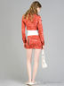 Классическая короткая юбка приталенного кроя. Выполнена из плотного неэластичного материала. Отрезной пояс, застегивается на пуговицы, спереди и сзади декоративная металлическая молния, сбоку оригинальная многослойная оборка, втачной карман.
