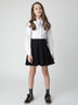 Черная расклешенная юбка - базовая модель в школьном гардеробе девочки. С любой блузкой, футболкой, жилетом, стильная лаконичная юбка составит строгий гармоничный комплект. Юбка выполнена из фактурного текстиля, что делает ее интересной и элегантной. Юбка на комфортной вискозной подкладке имеет внутреннюю регулировку пояса, что гарантирует красивую и комфортную посадку модели на девочках разного телосложения.