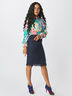 Юбка прямого силуэта. Разрез сзади. Застёжка на молнию. Без карманов.