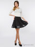 Пышная юбка-солнце из немнущейся костюмной ткани на талии, по подолу вставка из мягкой искусств. кожи. Втачной пояс и застежка в боковой части изделия застегивающаяся на пуговицу.