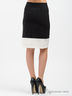 Юбка трапециевидного силуэта длиной до колена. По низу юбки притачная полоска черного цвета. Юбка без пояса.
