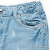 Мини-юбка из джинсовой ткани с потертостями и замятостями. Сзади два накладных кармана, спереди одинарный и двойной карманы. Декорирована стразами и фирменным логотипом на кармане. Регулируемая пояс-резинка. Застежка-молния и металлическая пуговица "болт"