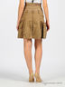 Расклешенная юбка из легкого, приятного на ощупь материала. Широкая кокетка из фактурного материала. Застегивается на молнию спереди. Есть шлевки для ремня. Два прорезных кармана. В комплект входят кожаные подтяжки.