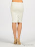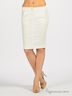 Легкая, зауженная к низу юбка из фактурного материала. Отрезной пояс, есть шлевки для ремня. Застегиваются на молнию и крупную пуговицу. В комплект входит тонкий лакированный ремешок с металлической пряжкой. Спереди два втачных кармана. Сзади небольшой разрез.