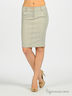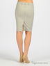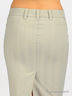 Легкая, зауженная к низу юбка из фактурного материала. Отрезной пояс, есть шлевки для ремня. Застегиваются на молнию и крупную пуговицу. В комплект входит тонкий лакированный ремешок с металлической пряжкой. Спереди два втачных кармана. Сзади небольшой разрез.