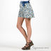 Легкая женская юбка-клеш на широкой кокетке. Посажена на пояс темно-синего цвета. К поясу сбоку пришита декоративная нашивка-галстук. Потайная молния-застежка вшита в один из боковых швов.