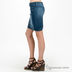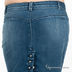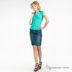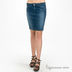 Юбка женская джинсовая. Застежка на молнии и пуговице. Шлевки для ремня. Два передних кармана. На задней части изделия расположена декоративная планка-застежка на кнопках, позволяющая регулировать форму юбки и высоту разреза.