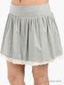 Детали: в широкий пояс вшита резинка, складки, нижний край подклада декорирован тесьмой