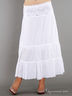 Легкая летняя юбка расклешенного кроя из гладкого шелковистого материала. Талия на резинке, украшена широкой ажурной вставкой.