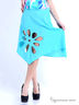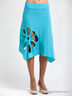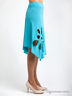 Оригинальная юбка расклешенного силуэта. Декорирована крупным перфорированным узором в виде цветка и оригинальной драпировкой сзади. Фигурная линия подола.