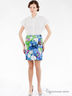 Стильная юбка-футляр из плотной ткани с красочным цветочным узором. Отрезной пояс со шлевками для ремня. Застежка сзади на молнию.