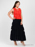 Элегантная юбка из хлопкового материала. Модель расклешенного покроя. Юбка декорирована горизонтальными полупрозрачными тонкими вставками-оборками. Модель дополнена подкладкой.