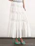 Элегантная юбка из хлопкового материала. Модель расклешенного покроя. Юбка декорирована горизонтальными полупрозрачными тонкими вставками-оборками. Модель дополнена подкладкой.