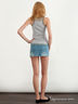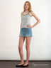 Стильная юбка из хлопкового денима. Отрезной пояс со шлевками для ремня. Застежка спереди на пуговицы. Спереди и сзади четыре накладных кармана. Юбка декорирована потертостями и бахромой на подоле.
