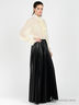 Стильная плиссированная юбка из искусственной кожи. Пояс выполнен из эластичной репсовой ленты с застежкой на молнию. Великолепный повседневный вариант!