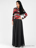 Эффектная длинная юбка-полусолнце из плотного, хлопкового трикотажа. Отрезной пояс на резинке. Юбка декорирована узкими вертикальными лентами с эффектом кожи.