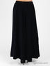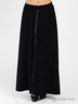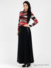 Эффектная длинная юбка-полусолнце из плотного, хлопкового трикотажа. Отрезной пояс на резинке. Юбка декорирована узкими вертикальными лентами с эффектом кожи.