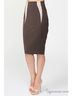 Юбка карандаш на подкладке, длиной ниже колена. Идеальное прилегание по фигуре, достигается за счёт рельефов выходящих из талии и заканчивающихся к низу изделия. Ярким дополнением являются контрастные фигурные вставки выполненные на полочке. Потайная молния расположена по центру спинки, низ среднего шва оформлен в виде шлицы.
