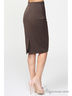 Юбка карандаш на подкладке, длиной ниже колена. Идеальное прилегание по фигуре, достигается за счёт рельефов выходящих из талии и заканчивающихся к низу изделия. Ярким дополнением являются контрастные фигурные вставки выполненные на полочке. Потайная молния расположена по центру спинки, низ среднего шва оформлен в виде шлицы.