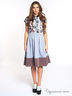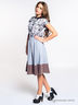 Пышная расклешенная юбка на поясе длиной ниже колена. Юбка со встречными складками состоит из двух тканей: верх хлопковый трикотаж, по низу контрастная отделка из плотного полиэстера. В среднем шве спинки расположена потайная молния.