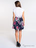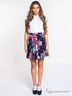 Расклешенная юбка на поясе из фактурного трикотажа, длиной выше колена. В среднем шве по спинке расположена потайная молния. Основным акцентом изделия является яркий принт с цветочным орнаментом.