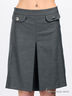 Классическая юбка, подчеркивающая стиль и элегантность деловой женщины. Прямого кроя, расклешенного книзу. Средней плотности низко эластичная ткань. Застегивается сзади на скрытую молнию. Спереди два декоративных клапана на пуговице. Спереди выполнена встречная складка.