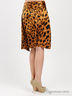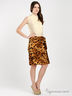 Оригинальная свободная юбка из тонкой полувискозной ткани с принтом леопард. Отрезной пояс. Застежка на молнию в боковом шве. Пояс декорирован широкими завязывающимися лентами. Спереди эффектная драпировка эмитирующая запах.