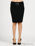 Классическая юбка, подчеркивающая стиль и элегантность деловой женщины. Прямого кроя. Плотная эластичная ткань. Застегивается сзади на скрытую молнию. Спереди декоративный пояс с пластмассовой, выполненной под металл пряжкой. Сзади разрез. Подклад из тонкой синтетической ткани.