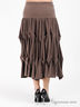 Оригинальная расклешенная юбка со средней линией талии выполнена из нежного вискозного джерси. Пояс на резинке, подол декорирован буфами. Прекрасное дополнение к классической блузе и свитеру!