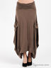 Стильная юбка расклешенного силуэта со средней линией талии выполнена из вискозного джерси. Широкий отрезной пояс декорирован драпировкой, два кармана с декоративными клапанами, низ изделия декорирован защипами. Отлично сочетается с классическими блузами и водолазками!