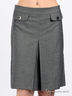 Классическая юбка, подчеркивающая стиль и элегантность деловой женщины. Прямого кроя, расклешенного книзу. Средней плотности низкоэластичная ткань. Застегивается сзади на скрытую молнию. Спереди два декоративных клапана на пуговице. Спереди выполнена встречная складка.