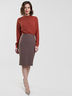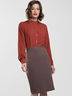 Юбка карандаш классического кроя на подкладе из мягкой костюмной ткани. Застегивается на потайную молнию в заднем шве и пуговицу на пришивном поясе. Юбка с вытачками на спинке, в заднем шве шлица.