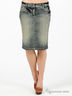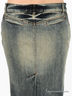 Детали: юбка-карандаш, втачной пояс и шлевки для ремня, застежка на металлической молнии и на декоративной пуговице, пять прорезных карманов, ткань вытерта, юбка с одним шлицом.