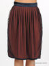 Юбка- "бочонок" двухслойная. Внутренний слой из плотной ткани, внешний из сеточки. Сверху и снизу атласные ленты. Застегивается на молнию и пуговицы.