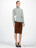 Юбка-карандаш с завышенной талией. Фигурные вытачки, декоративные складки. Застежка- молния. Сзади завязывается на бант.