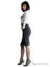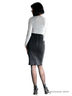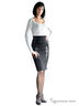 Юбка средней длины из трикотажной ткани с кожаными вставками. Сзади шлица. Застегивается на замок.