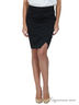 Юбка-карандаш с треугольным разрезом спереди, образованный асимметричными накладными деталями. Модель выполнена с застежкой на потайную молнию сзади.