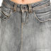 Расклешенная юбка из плотной джинсы Застегивается на молнию и пуговицу. Два передних фигурных кармана, один небольшой на молнии, два задних кармана. Юбка украшена цветной прострочкой и потертостями.