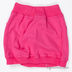 Детали: в широкий трикотажный пояс вставлена резинка, два передних кармана, низ изделия посажен на трикотажную манжету, подол украшен аппликацией