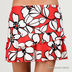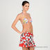 Расклешенная юбка украшена оборкой и принтами. Эластичный гладкий материал.