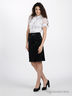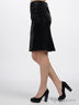 Детали: втачной пояс, застежка на молнии на заднем полотнище юбки, снизу расклешающий разрез.