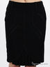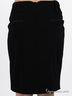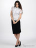 Детали: юбка на подкладке, втачной пояс со шлевками под ремень, вставки из атласной ткани имитируют карманы, застежка на молнии на заднем полотнище юбки, декор из атласной ткани имитирует двойную юбку.