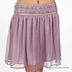 Легкая двухслойная юбка. Верхний воздушный слой декорирован тесьмой. Застегивается сбоку на молнию.