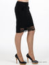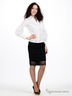 Детали: застежка на молнию, втачной пояс со шлевками для ремня, задняя часть изделия дополнена шлицей, передняя часть изделия декорирована гипюровым кружевом, два кармана