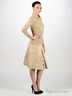 Детали: застежка на молнию и пуговицу, широкий втачной пояс со шлевками для ремня, на правом боку декоративные складки и пуговицы