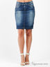 Стильная юбка зауженного силуэта. Отрезной пояс со шлевками для ремня. Прямоугольная кокетка. Застежка на молнию и пуговицу. 5 карманов.