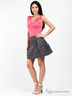 Стильная короткая юбка расклешенного силуэта. Отрезной пояс. Застежка на молнию. Модель украшена вытачками и оригинальным принтом.