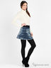 Стильная юбка расклешенного силуэта со средней линией талии выполнена из денима средней плотности. Пояс на резинке, декоративные встречные складки. Отлично сочетается с классической блузой.