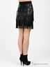 Оригинальная юбка со средней линией талии выполнена из плотного эластичного трикотажа. Отрезной пояс. Изделие декорировано бахромой из искусственной кожи. Будьте в центре внимания.