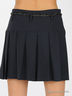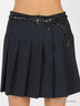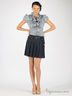 Юбка в складку, посажена на кокетку. Есть шлевки для ремня. Застегивается на пуговицы спереди. В комплект входит ремень с металлической пряжкой.